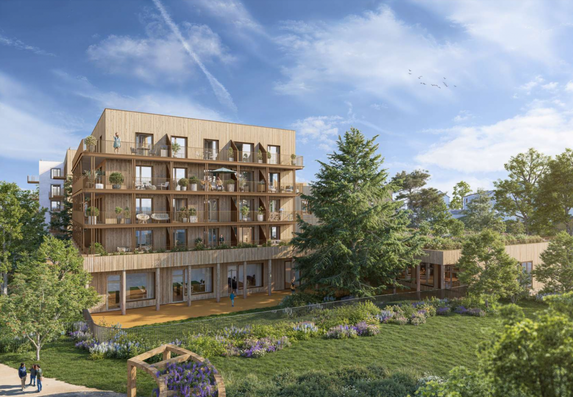 Le programme s’organise en 5 plots (A-B-C-D-E) en R+3/R+4 et 1 niveau de sous-sol de 160 places de stationnements.