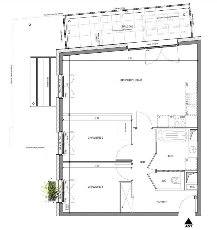 445 000€ Appt. T3 58.02m2 2ème