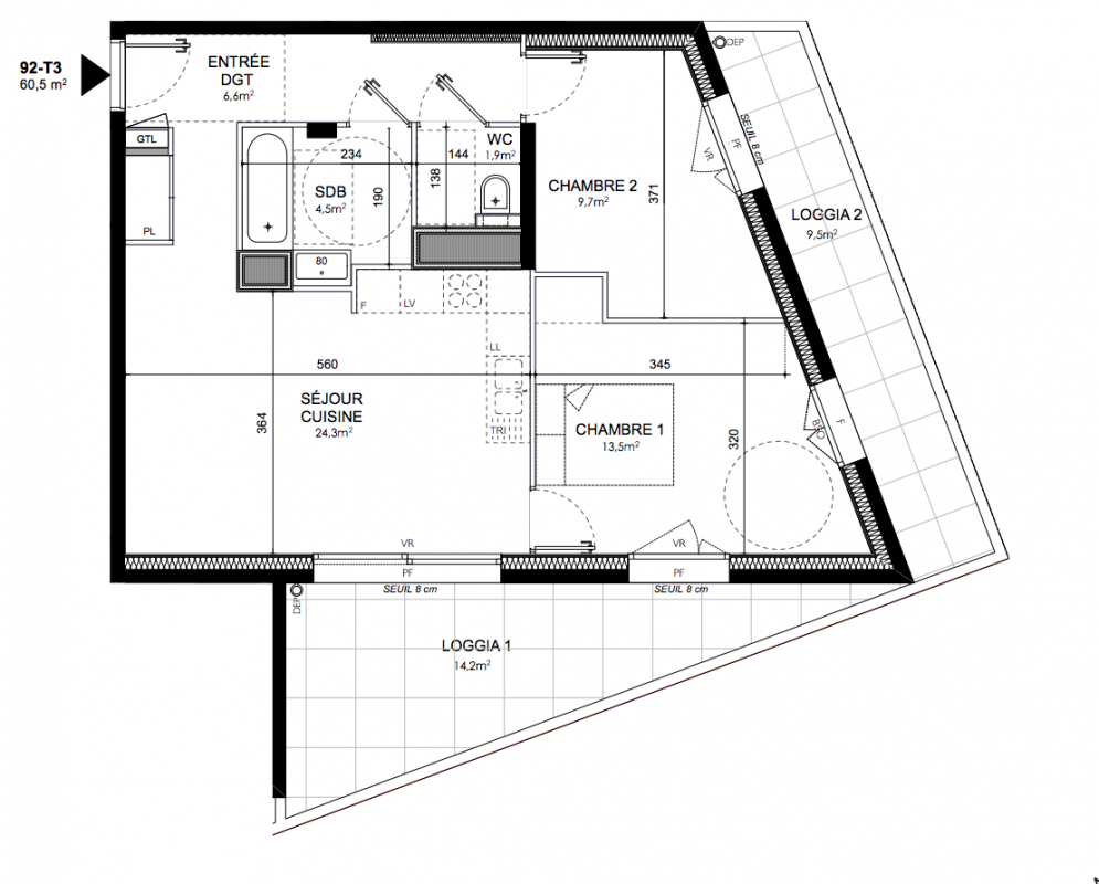 345 000€ Appt. T3 60.7m2 2ème