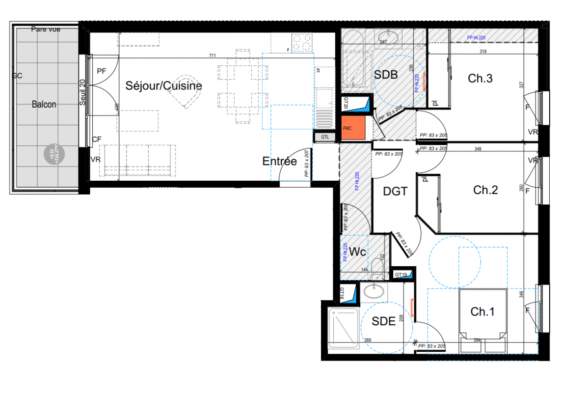 | Voir | Disponible | 251 500€ | E01 | Appt. | T4 | 83.79m2 | 0-RDC | Disponible | 251 500€ | Voir |