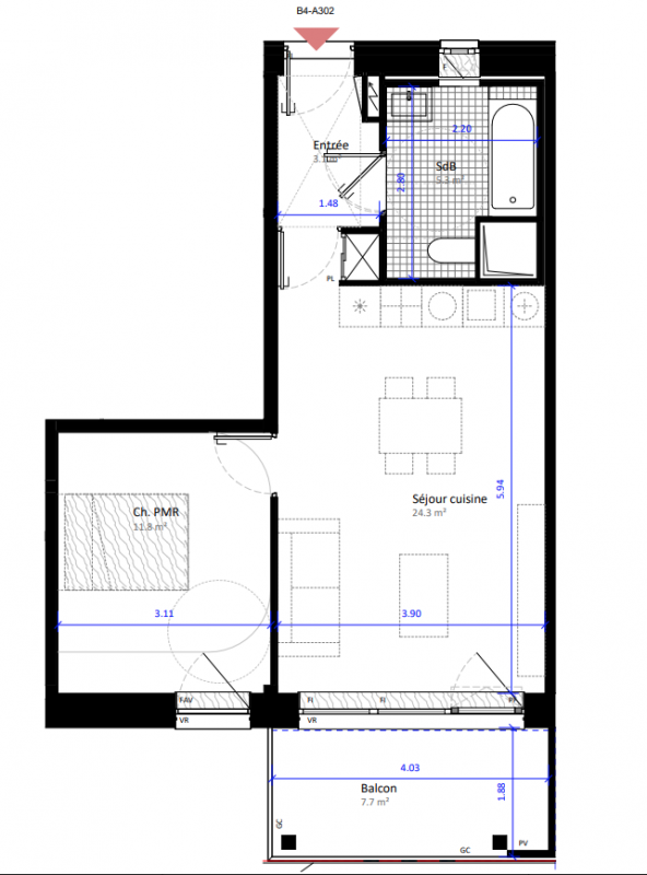 | Voir | Disponible | 243 000€ | B4-A106 | Appt. | T2 | 56.4m2 | 1er | Disponible | 243 000€ | Voir |