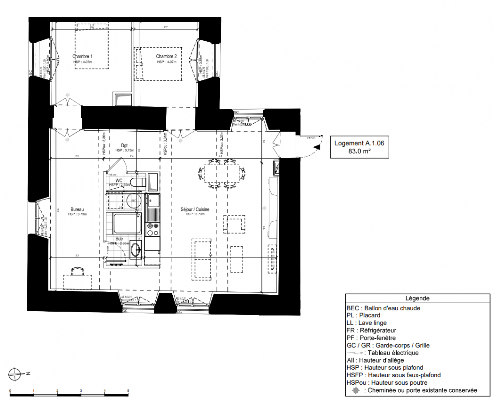 Les aménagements préservent les éléments historiques remarquables tels que les sols patrimoniaux, les cheminées en marbre et les décors classés, tout en intégrant le confort moderne.