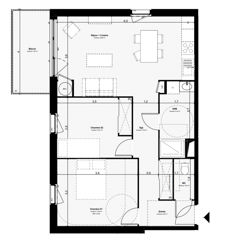Autres logements T3 du programme "PLAISANCE"
