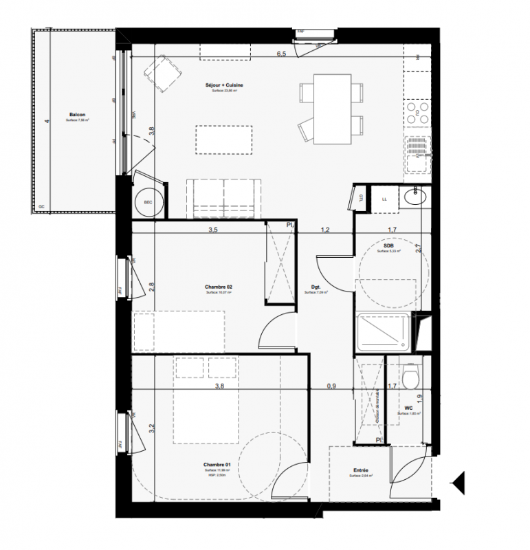 | Voir | Disponible | 241 799€ | 3005 | Appt. | T3 | 59m2 Le bon plan | 0-RDC | Disponible | 241 799€ | Voir |