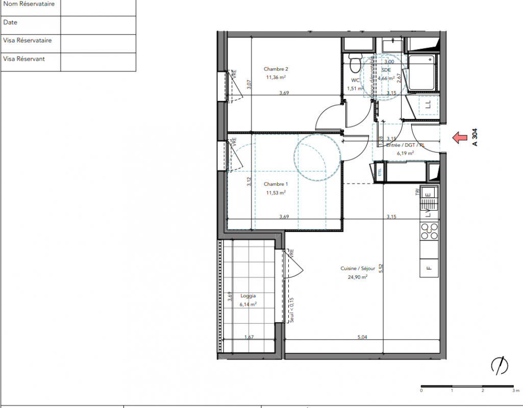 259 900€ Appt. T3 61.96m2