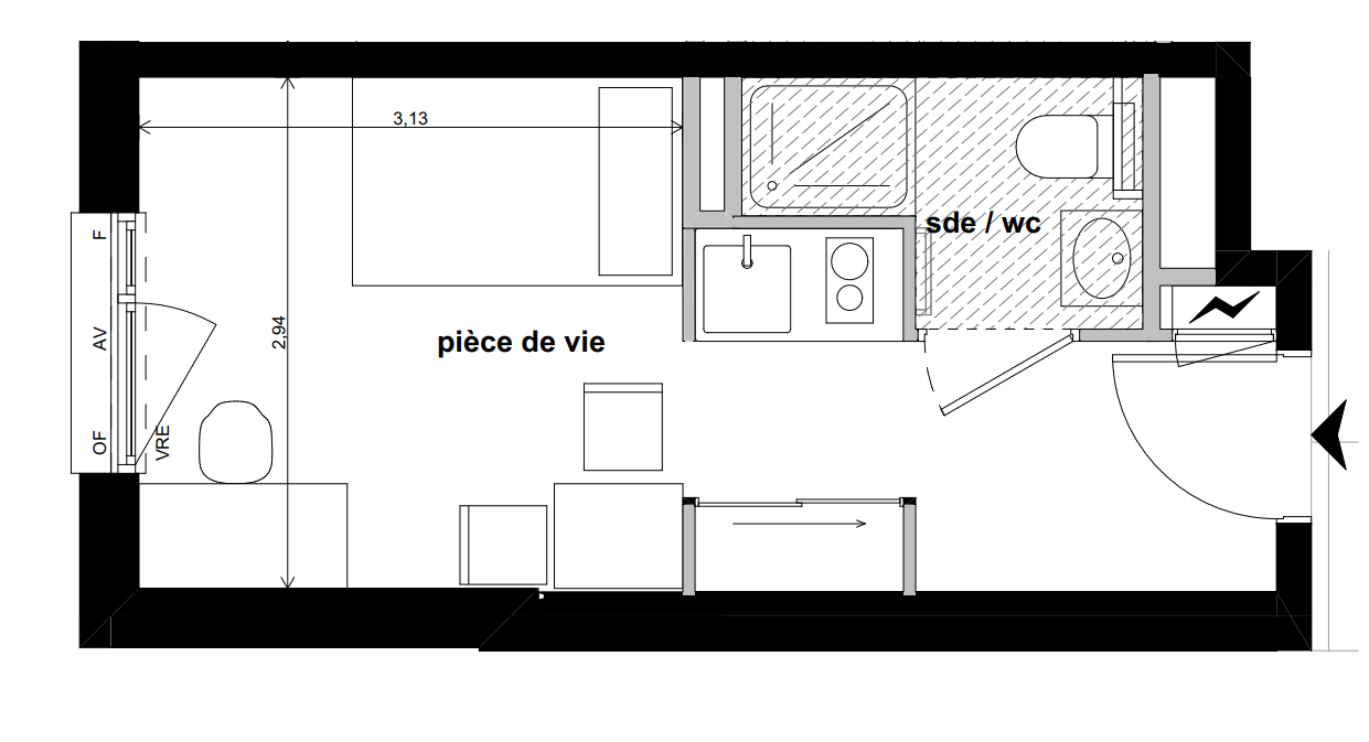 Les studios tous meublés et équipés, sont complétés par des espaces partagés : cuisine et salle commune, terrasse paysagée et laverie.