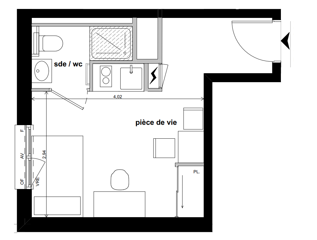 Les studios tous meublés et équipés, sont complétés par des espaces partagés : cuisine et salle commune, terrasse paysagée et laverie.