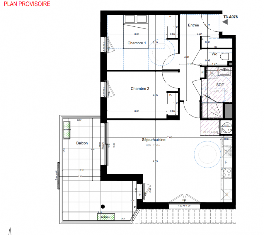 230 417€ Appt. T3 76.15m2 9ème