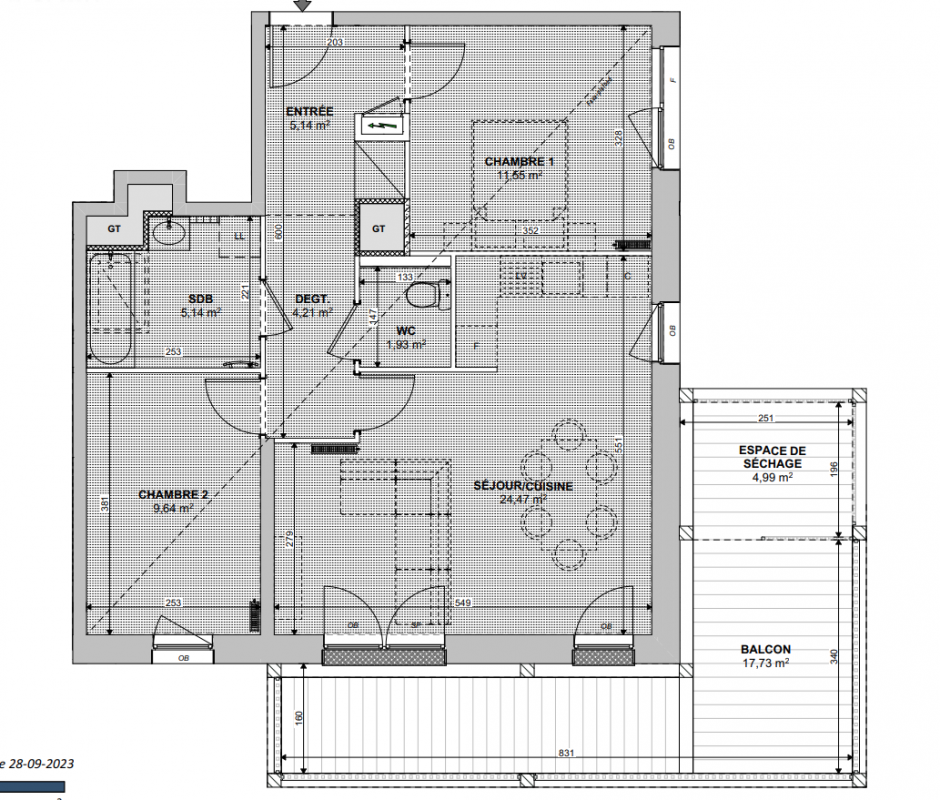 301 649€ Appt. - 73.24m2 3ème