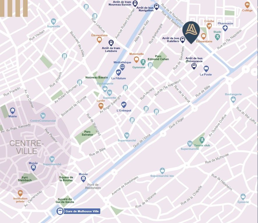 Les 30 jours Flash ! Faites la meilleure affaire de fin d’année à MULHOUSE et emménagez immédiatement ! Jusqu’à 8 000 euros de remise et frais de notaire offerts. Et en plus avec la TVA réduite à 5,5%, devenez propriétaire de votre appartement neuf pour le même prix que votre loyer ! Découvrez votre future adresse "Programme neuf Mulhouse (68100)" à Mulhouse, une ville riche en patrimoine culturel et historique nichée au cœur de l'Alsace et proche des frontières suisse et allemande. Située à seulement 3 kilomètres du centre-ville et à quelques minutes de la gare de Mulhouse, la résidence associe le charme des bords de canal avec la proximité des infrastructures citadines. Vous y trouverez tous ce dont vous aurez besoin pour vous offrir une vie quotidienne active et agréable. Vous pourrez vous balader dans les ruelles animées du centre-ville ou le long de l’eau qui conduit directement au Nouveau-Bassin, quartier prisé pour les loisirs.La résidence "Programme neuf Mulhouse (68100)" est composée d’appartements du 2 au 4 pièces. Chaque appartement dispose d’un espace privatif : balcon, terrasse ou jardin privatif avec vue sur l’eau pour certains. Plusieurs arrêts de bus sont à proximité immédiate : ligne C6 « Arrêt Bateliers » à 200 m, bus ligne C5 « Arrêt Prévoyance » à 300 m ainsi que l’arrêt de tramway ligne 2 « Nouveau Bassin » à seulement 900 m vous permet de vous déplacer en toute simplicité. De plus, la gare de Mulhouse ainsi que l’A36 sont à 5 minutes en voiture, ce qui facilitera vos déplacements.Contactez vite un de nos conseillers pour découvrir tous nos appartements neufs à Mulhouse et pour concrétiser votre projet immobilier.