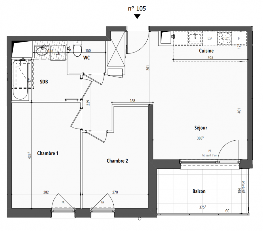 296 900€ Appt. T3 59.49m2 0-RDC