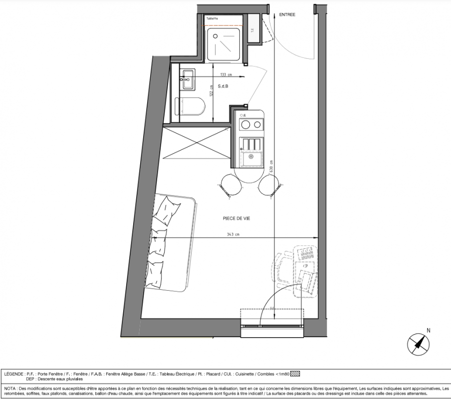 106 391€ Appt. Studio 17.24m2 4ème
