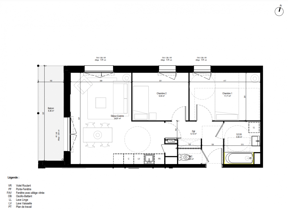 204 626€ Appt. T3 58.03m2 0-RDC