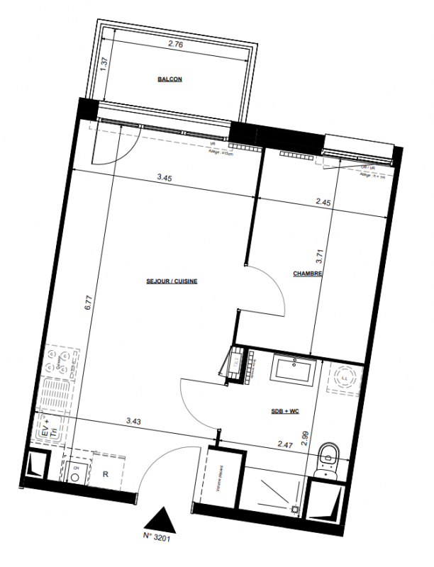 176 303€ Appt. T2 38.3m2 3ème