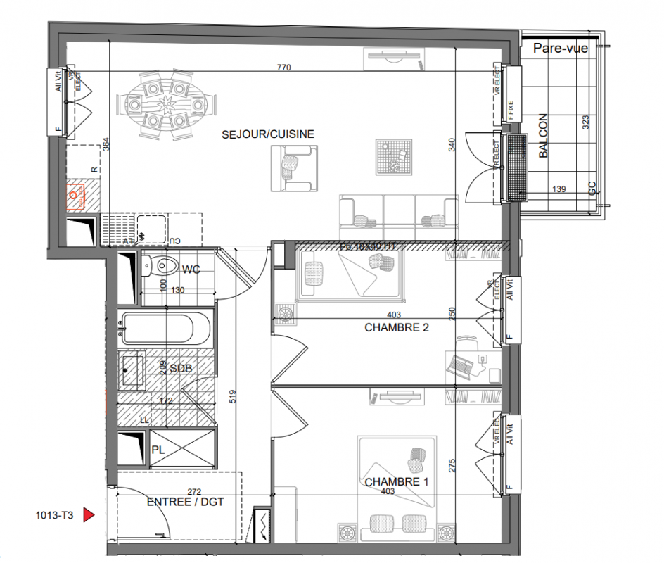 | Voir | Disponible | 255 000€ | 1023 | Appt. | T3 | 63m2 | 0-RDC | Disponible | 255 000€ | Voir |
