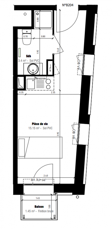 102 700€ Appt. Studio 19.06m2 2ème