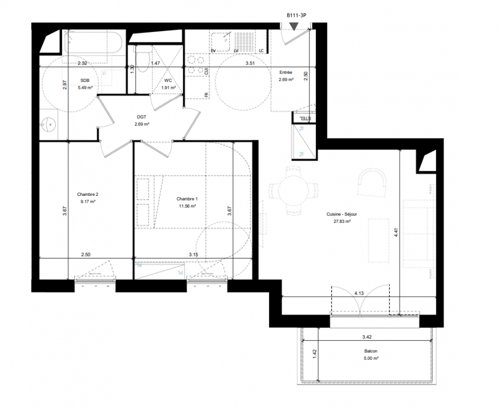 233 500€ Appt. T3 61.61m2 2ème