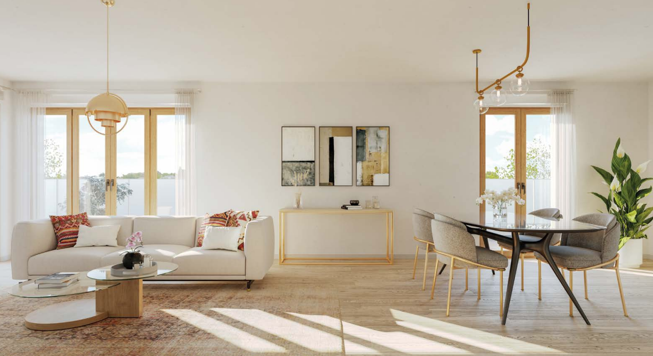 Déclinés du 2 au 5 pièces duplex, les appartements d'Elégance sont tous prolongés par un espace extérieur. Les balcons et les loggias offrent des vues dégagées sur le quartier.