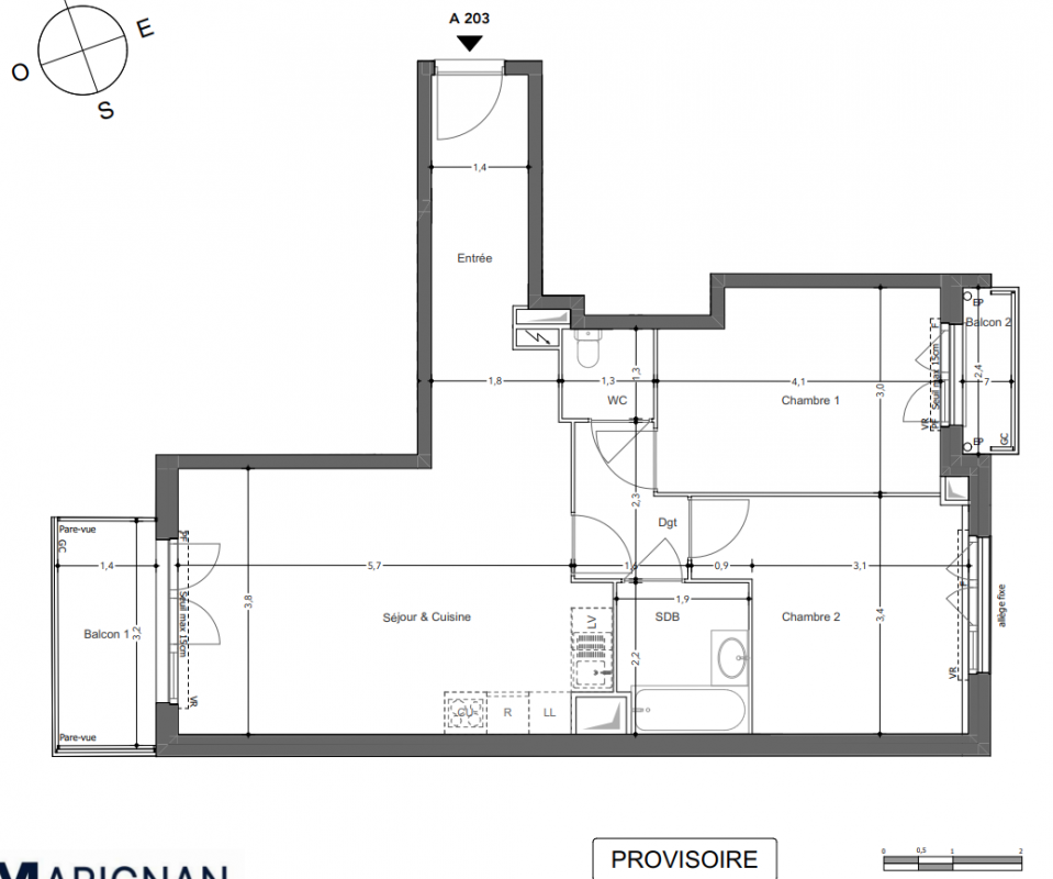 399 000€ Appt. T3 59.63m2 2ème