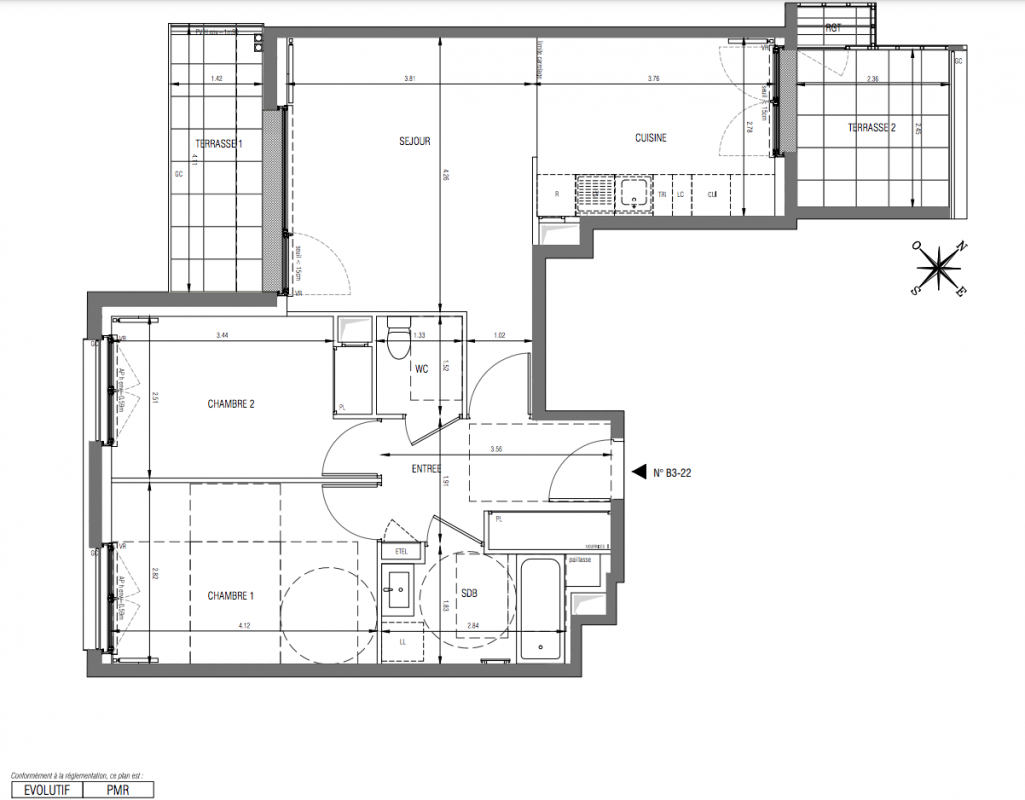 Cloisons épaisseur 7 cm dans l’ensemble des logements