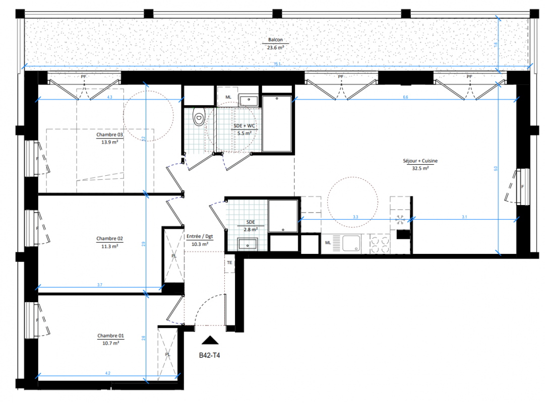 | Voir | Disponible | 414 100€ | C02 | Appt. | T4 | 79.9m2 | 0-RDC | Disponible | 414 100€ | Voir |