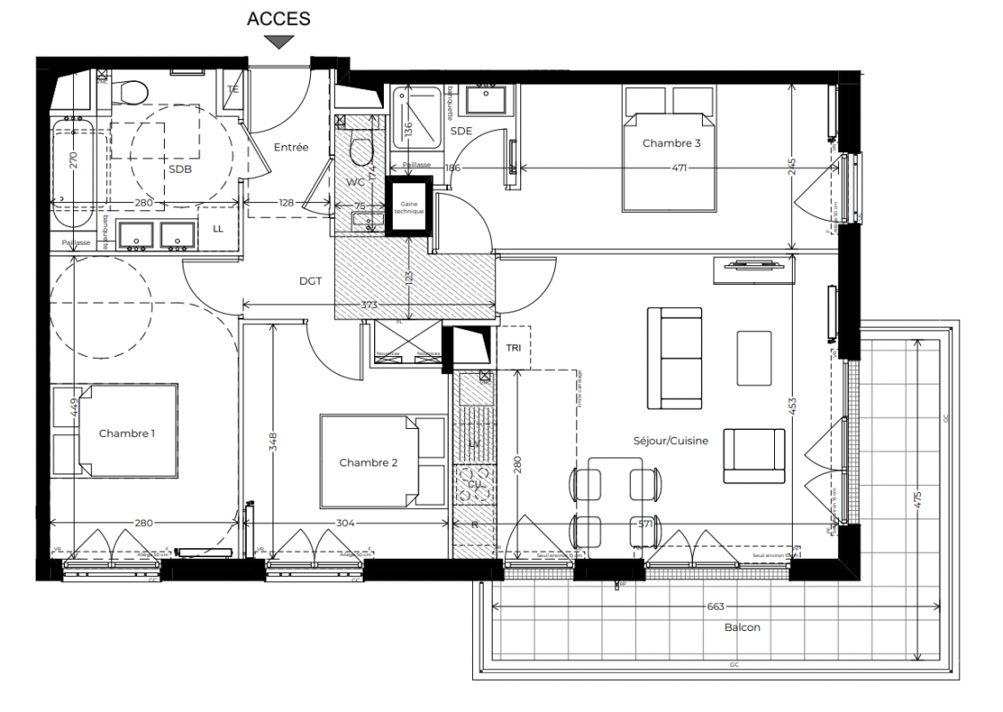 423 000€ Appt. - 60.3m2 1er