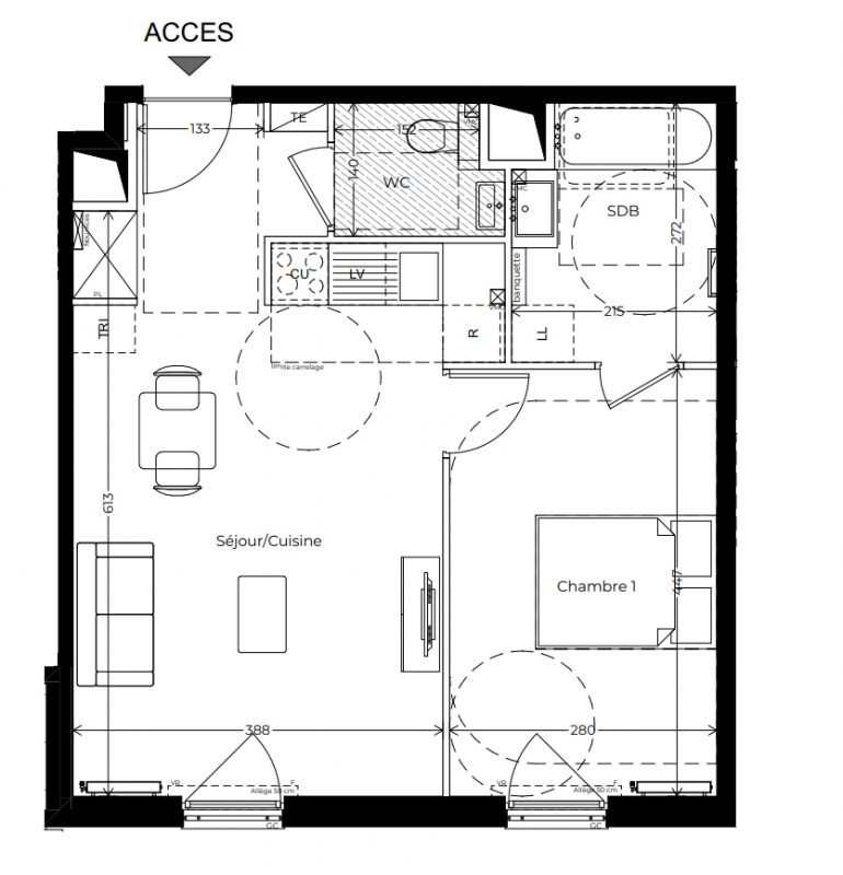 | Voir | Disponible | 333 000€ | A01 | Appt. | - | 43.8m2 | 0-RDC | Disponible | 333 000€ | Voir |