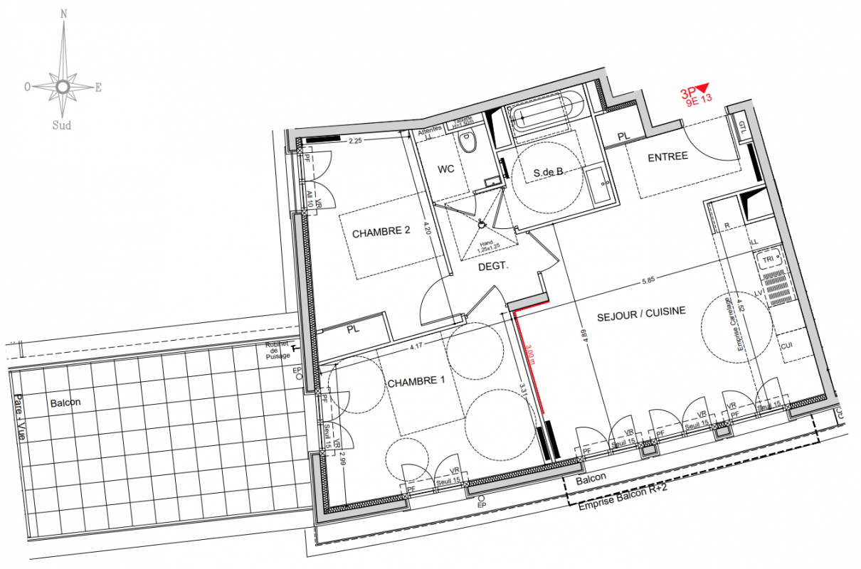 687 000€ Appt. T3 70.17m2 3ème