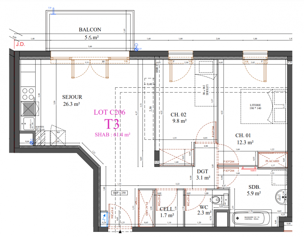 | Voir | Disponible | 253 000€ | C105 | Appt. | T3 | 60.1m2 | 1er | Disponible | 253 000€ | Voir |