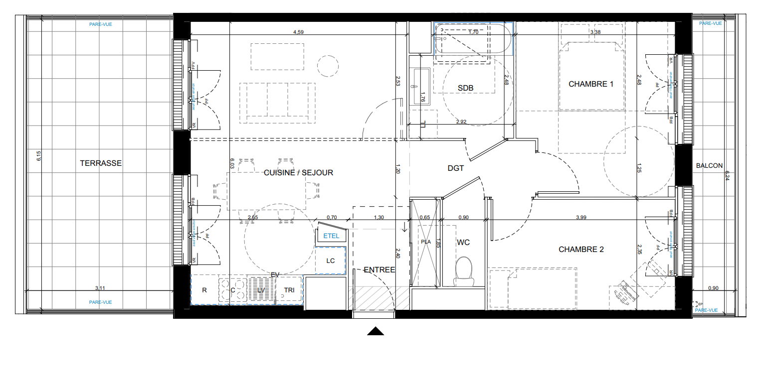 | Voir | Disponible | 301 308€ | B43 | Appt. | - | 62.35m2 | 4ème | Disponible | 301 308€ | Voir |