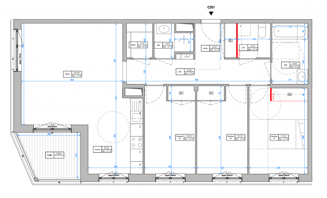 | Voir | Disponible | 432 227€ | C101 | Appt. | - | 86.7m2 | 1er | Disponible | 432 227€ | Voir |