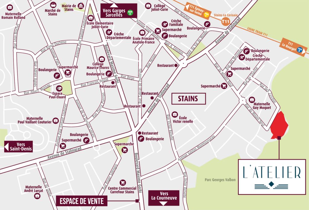 "L'Atelier" est un programme neuf localisé dans la ville de Stains (Seine-Saint-Denis). Les logements sont de type “Appt.” répartis en T2, T3, T4. Il y a actuellement 107 logements disponibles et la livraison est prévue au 2ème trimestre 2028. Le programme immobilier neuf "L'Atelier" est éligible aux dispositifs fiscaux suivants : Accession.