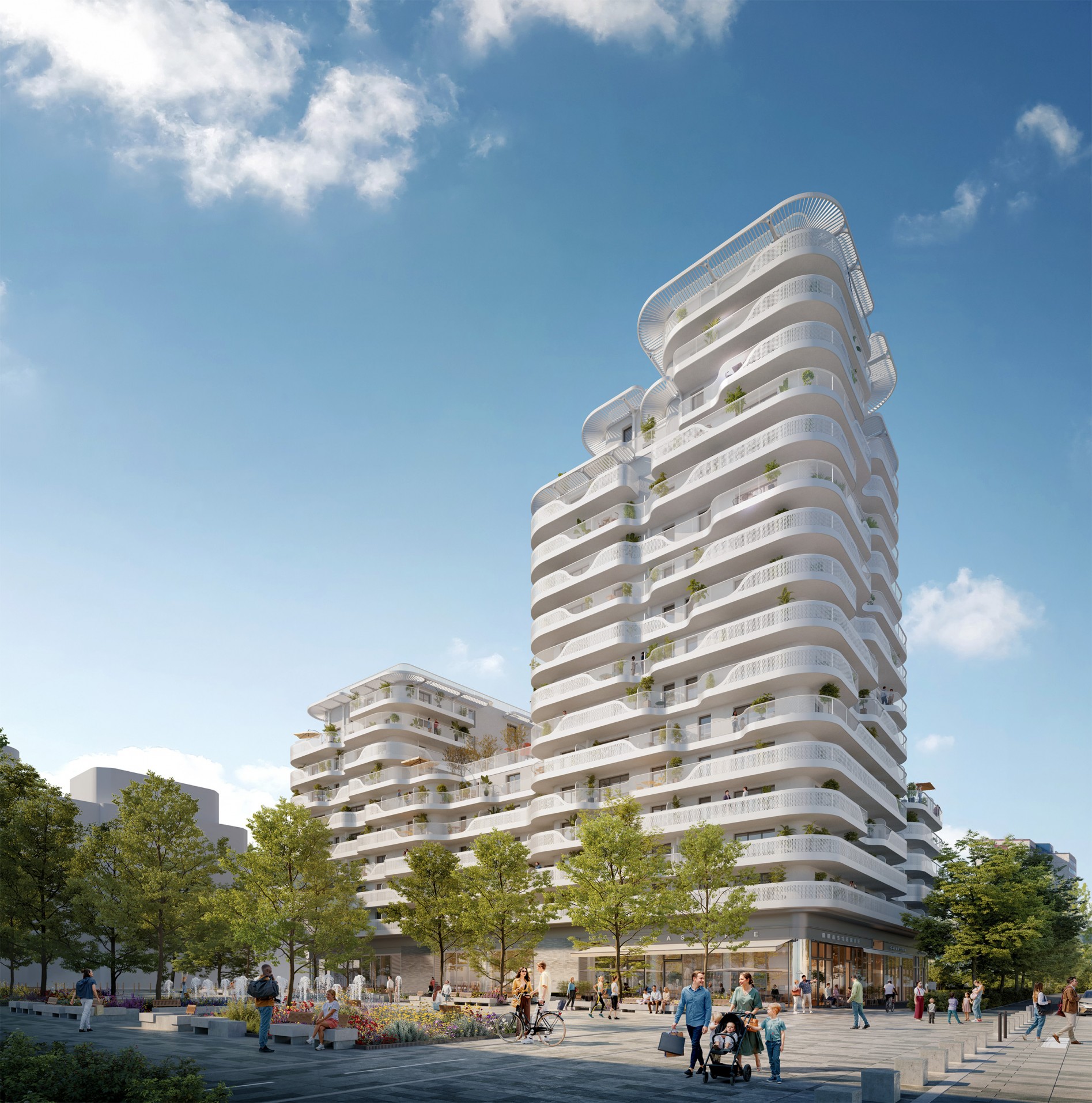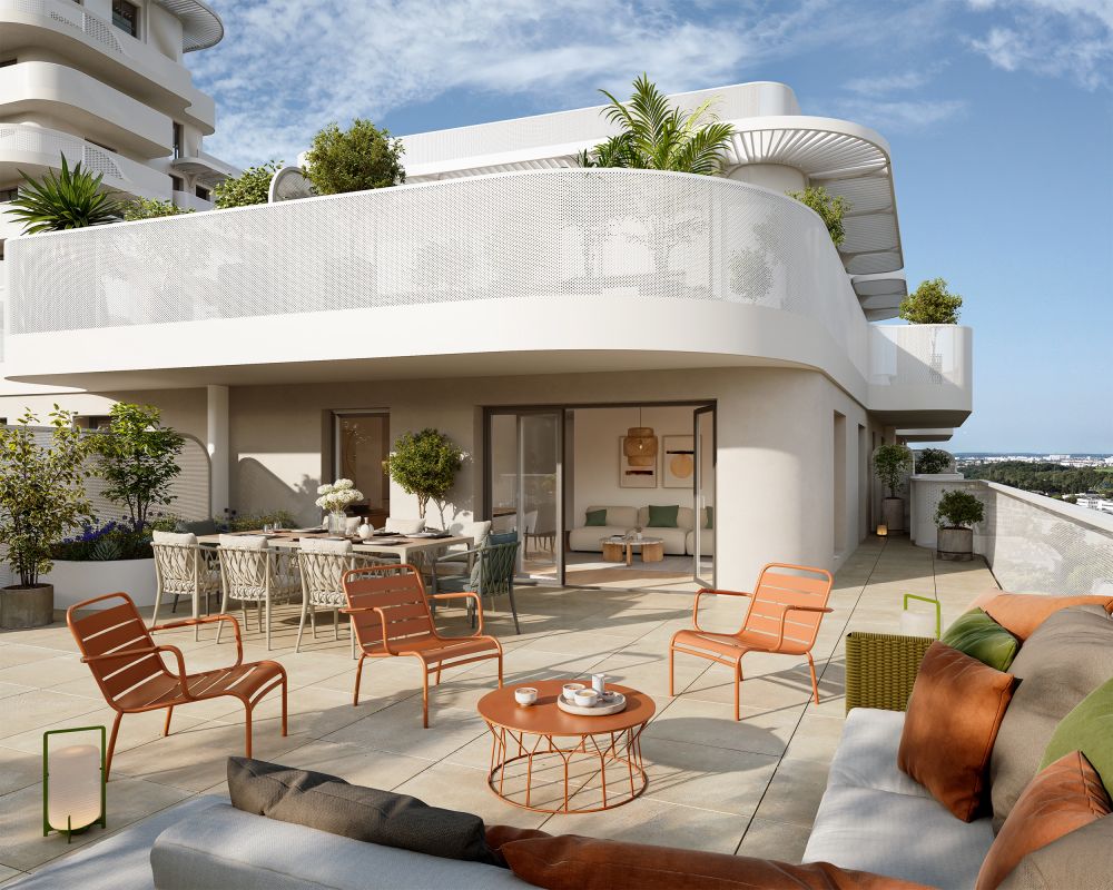 Tout comme la 1ère tranche, l’architecture conserve son élégance avec la succession de magnifiques terrasses en cascade, aux formes organiques et végétales qui font échos au cœur d’îlot pays...
