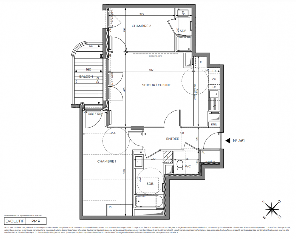 454 977€ Appt. T3 65.91m2 2ème