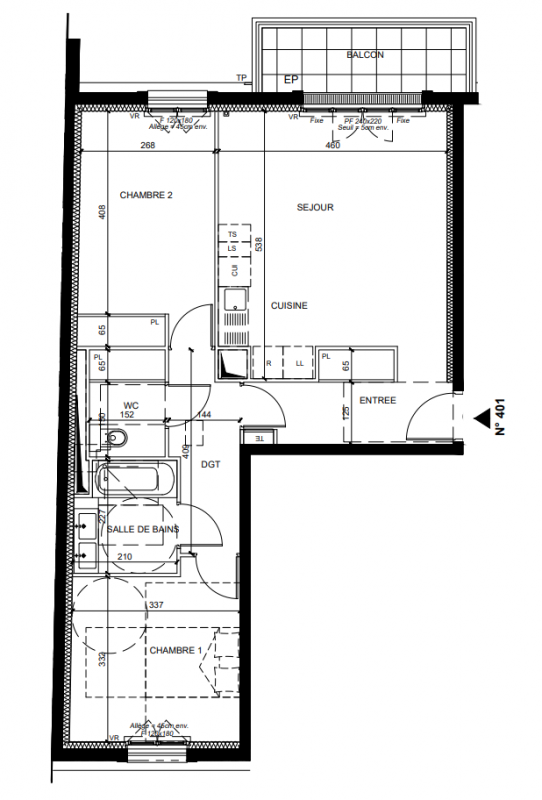 518 000€ Appt. T3 66.8m2 2ème