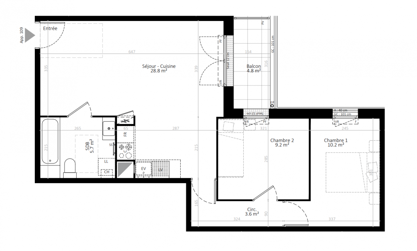 | Voir | Disponible | 285 384€ | 202 | Appt. | T3 | 59.3m2 | 2ème | Disponible | 285 384€ | Voir |