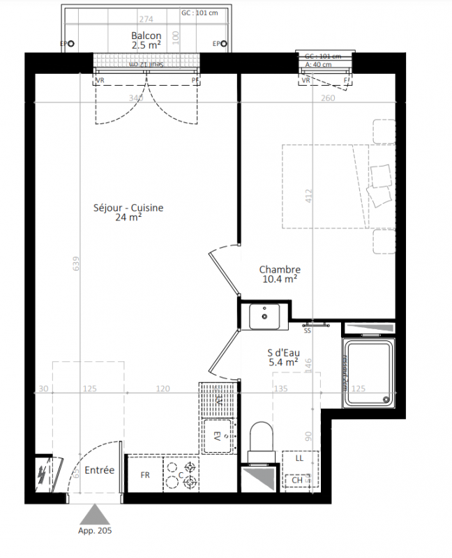 | Voir | Disponible | 216 569€ | 106 | Appt. | T2 | 43m2 | 0-RDC | Disponible | 216 569€ | Voir |