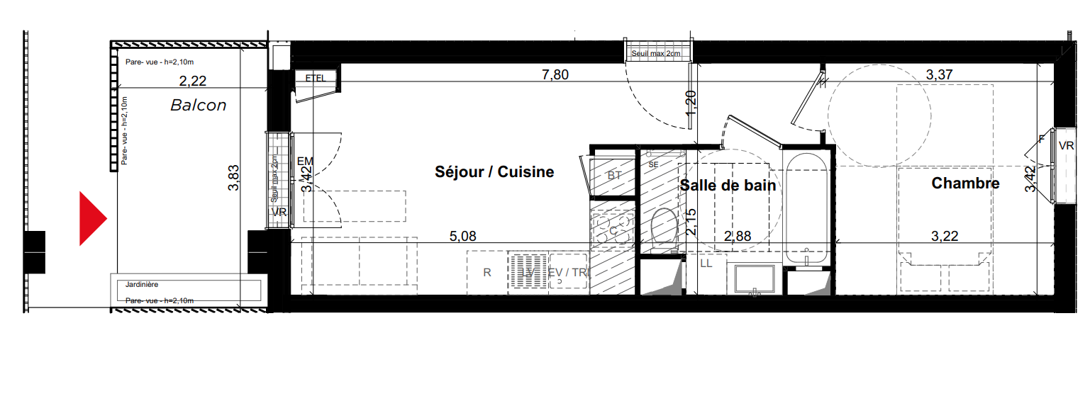 | Voir | Disponible | 173 900€ | B03 | Appt. | - | 37.66m2 | 0-RDC | Disponible | 173 900€ | Voir |