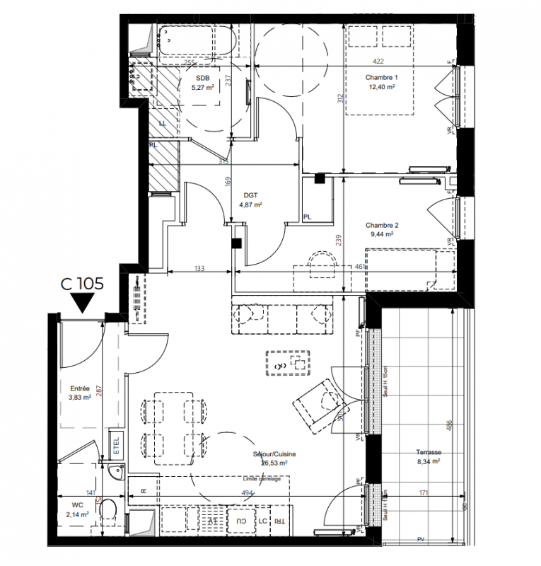 | Voir | Disponible | 387 000€ | C103 | Appt. | T3 | 62.8m2 | 1er | Disponible | 387 000€ | Voir |