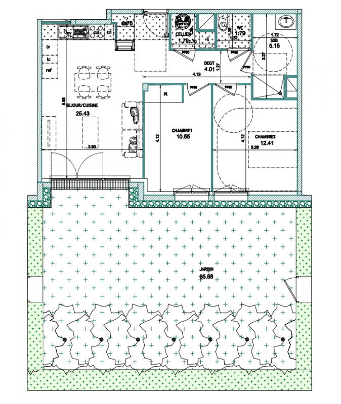 544 000€ Appt. T3 71.33m2 0-RDC
