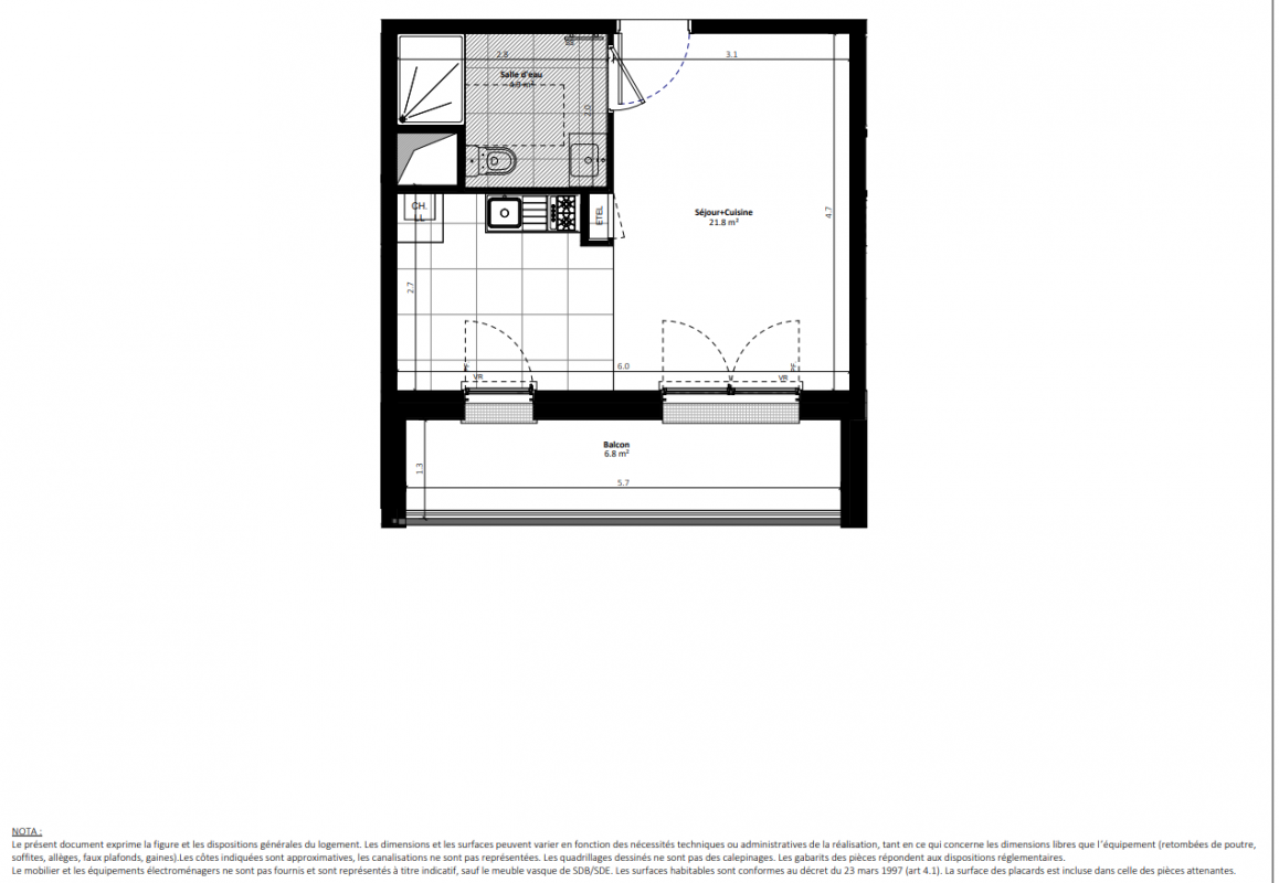 173 800€ Appt. Studio 32.6m2 0-RDC