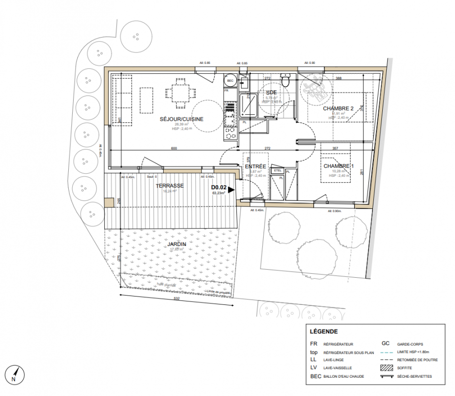 299 639€ Appt. T3 62.56m2 0-RDC