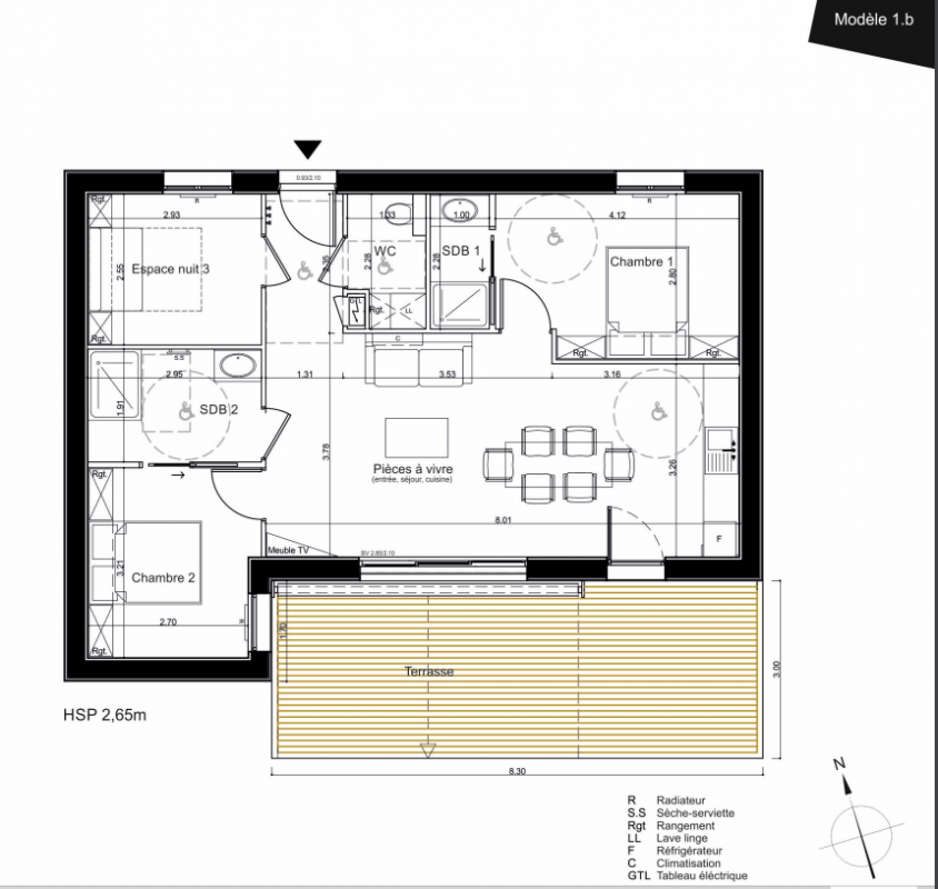 | Voir | Disponible | 355 145€ | M13 | Appt. | T3 | 76.1m2 | 0-RDC | Disponible | 355 145€ | Voir |