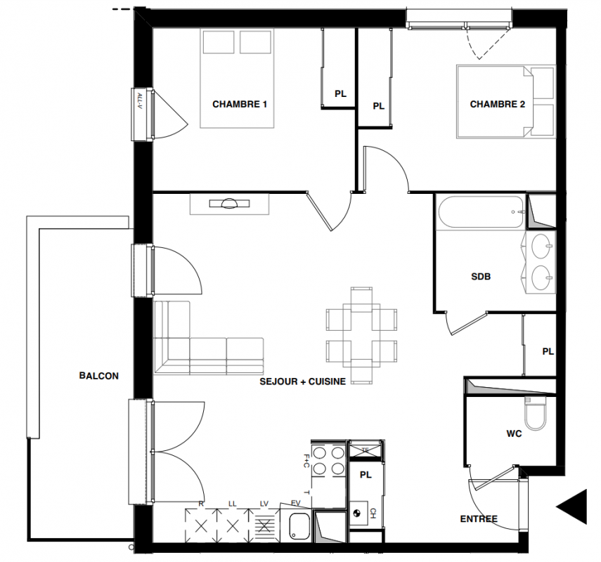 251 900€ Appt. T3 58.05m2 0-RDC
