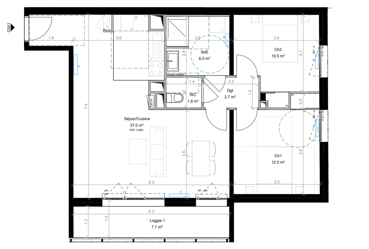 | Voir | Optionné | 305 000€ | C106 | Appt. | T3 | 62.8m2 | 0-RDC | Optionné Mais pas encore vendu 😉 | 305 000€ | Voir |