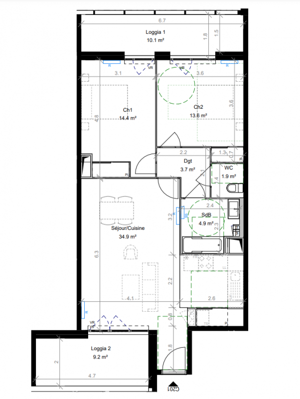 349 000€ Appt. T3 69.2m2 1er
