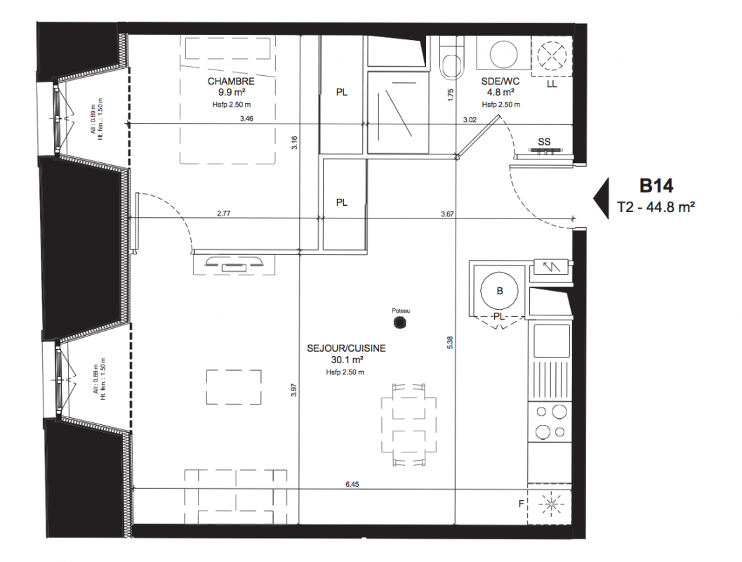 | Voir | Disponible | 347 300€ | B02 | Appt. | T2 | 44.6m2 | 0-RDC | Disponible | 347 300€ Prix foncier 24 000€ Prix travaux 323 300€ | Voir |