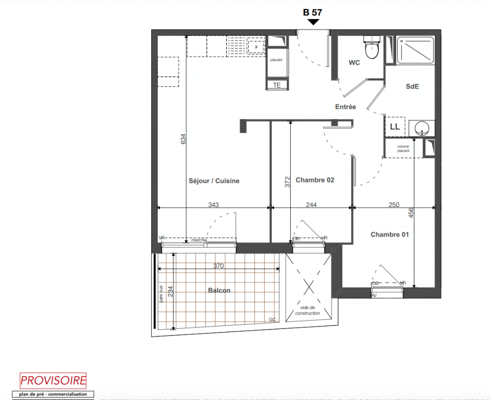 260 000€ Appt. T3 55.71m2 4ème