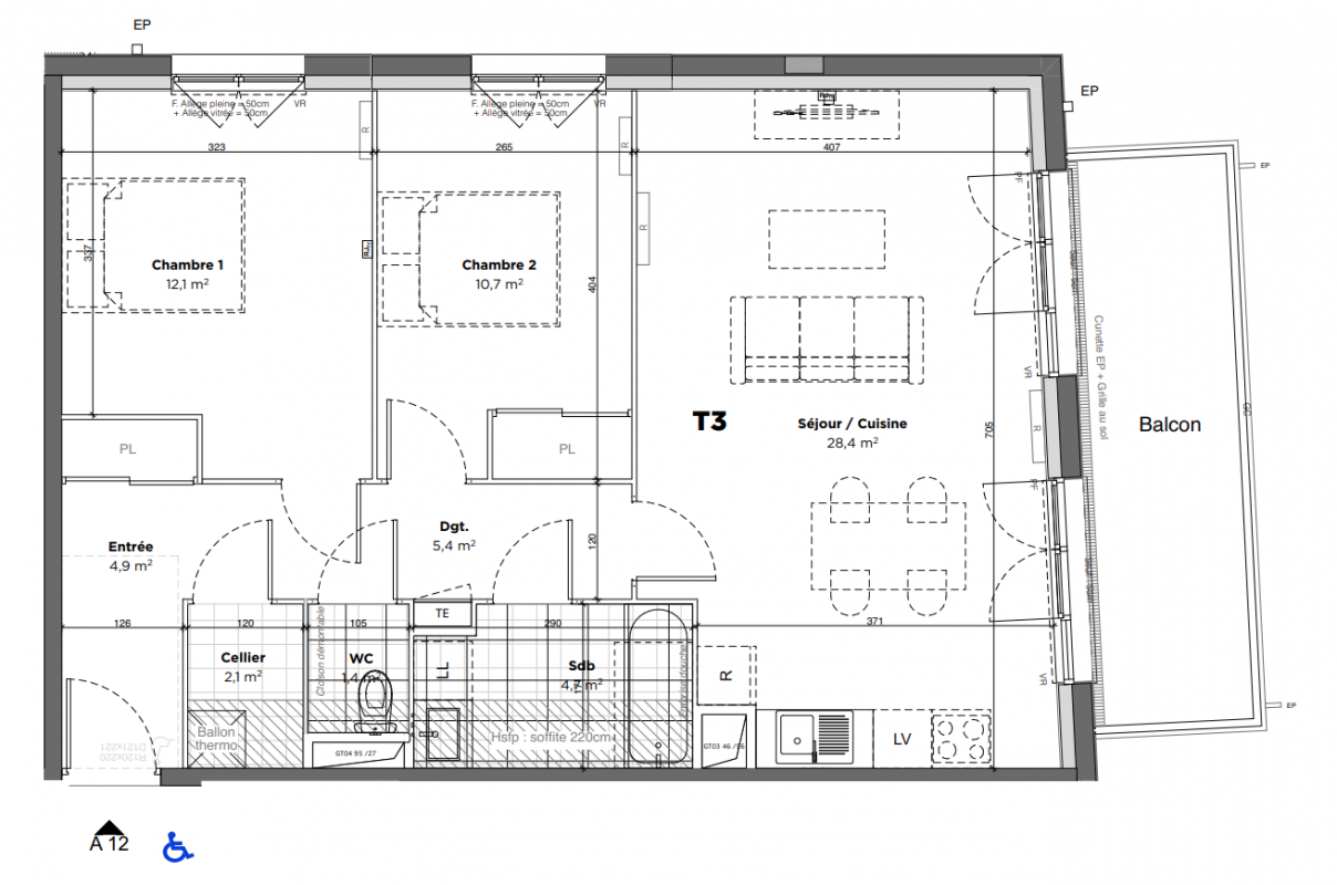 224 500€ Appt. T3 65m2 1er