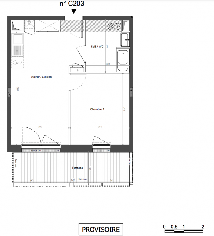 | Voir | Disponible | 193 100€ | C003 | Appt. | T2 | 41.7m2 | 0-RDC | Disponible | 193 100€ | Voir |